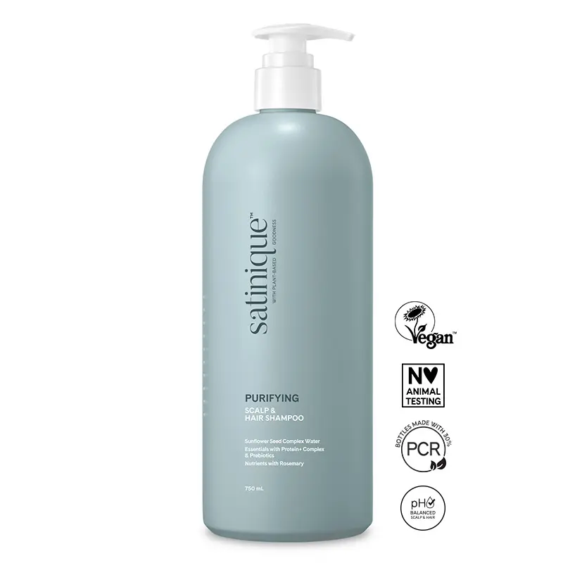 Îmbrățișează frumusețea naturală a părului și scalpului tău cu șamponul purificator pentru scalp și păr Satinique™!